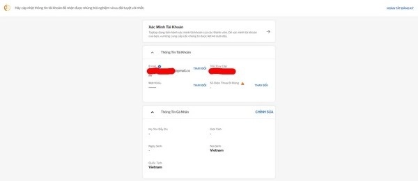 Bạn cần xác minh email và hoàn tất thông tin cá nhân để kích hoạt đầy đủ chức năng.
